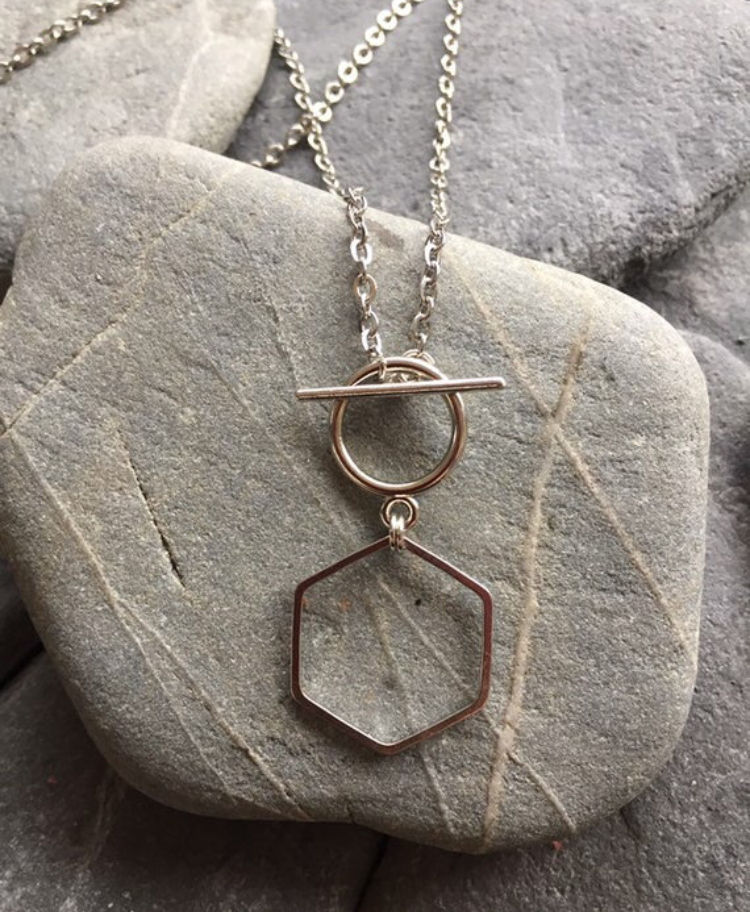 Hexagon fun. Modern, geometric necklace, eye glasses chain, toggle fastening, ea